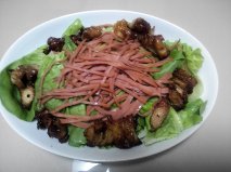 こちらは、ハムと鶏皮入りです。